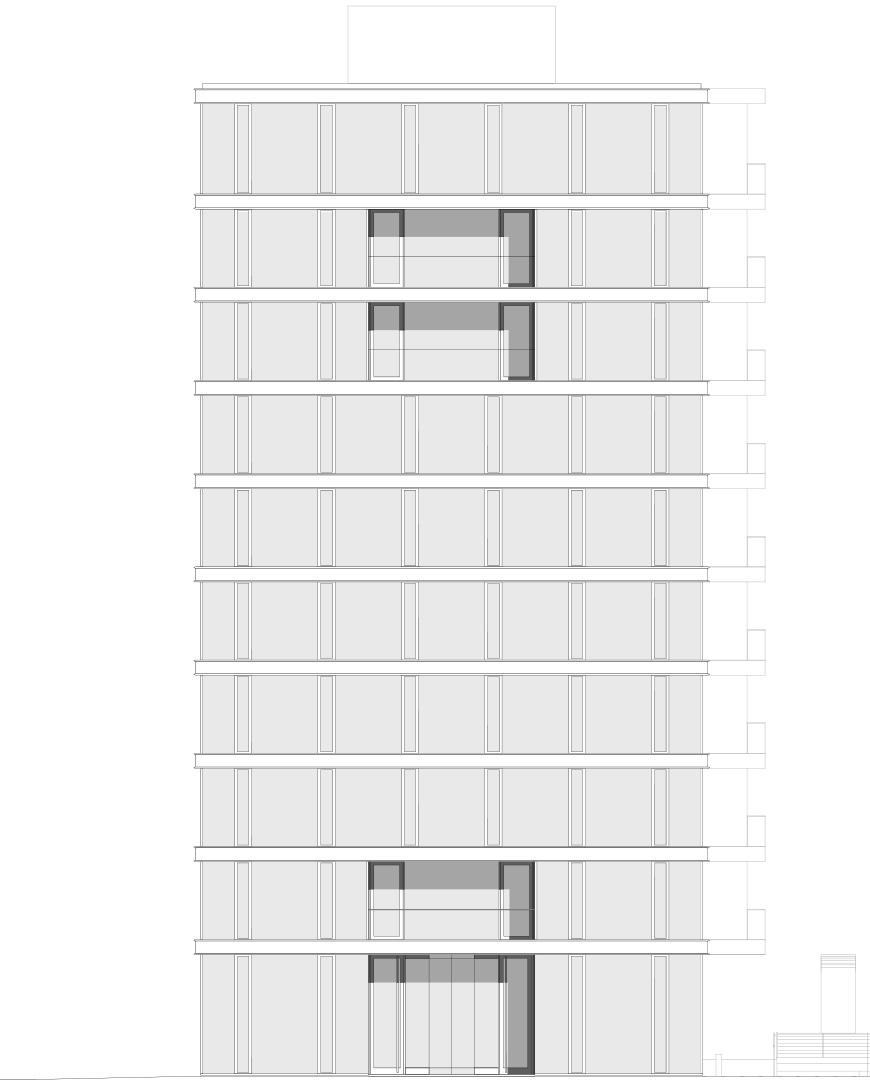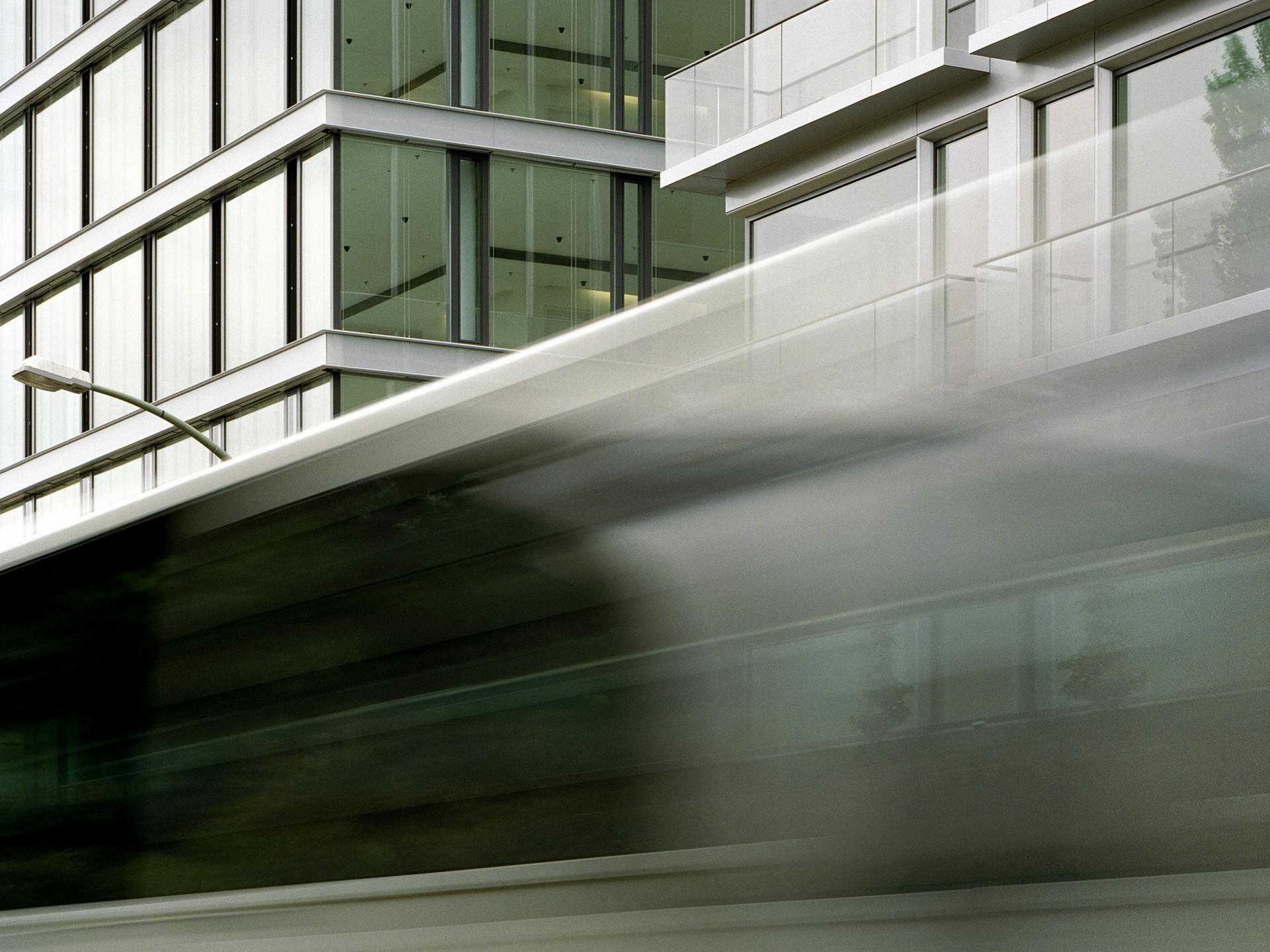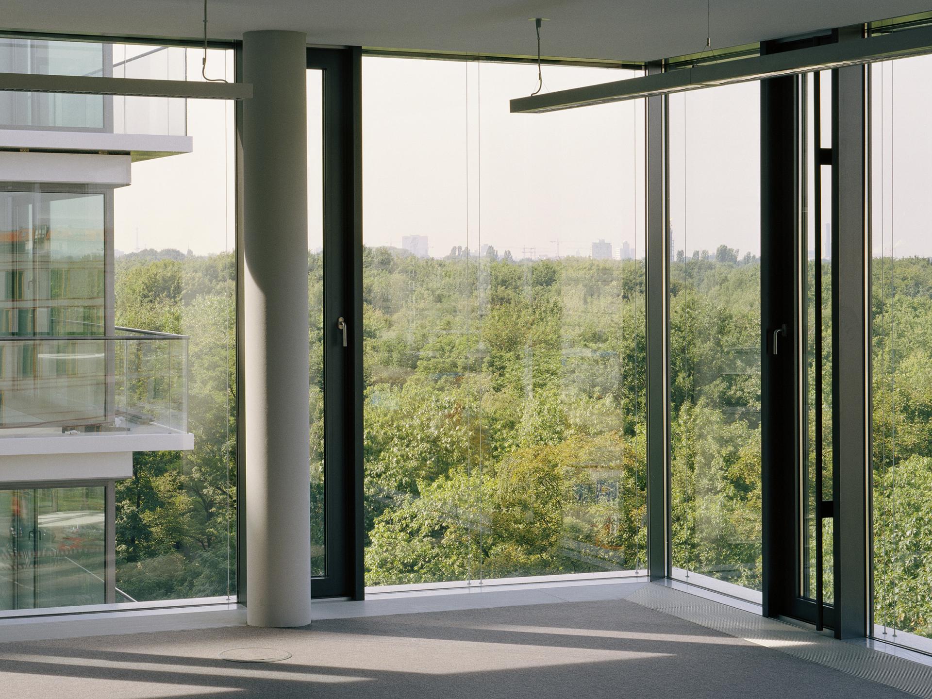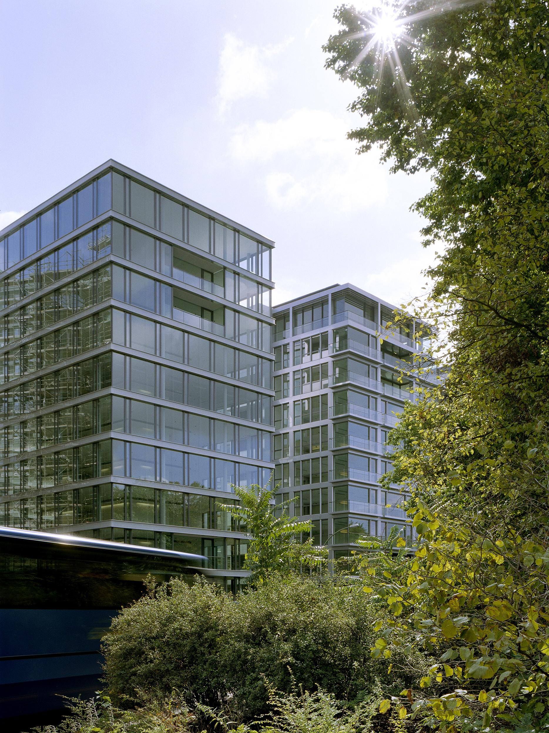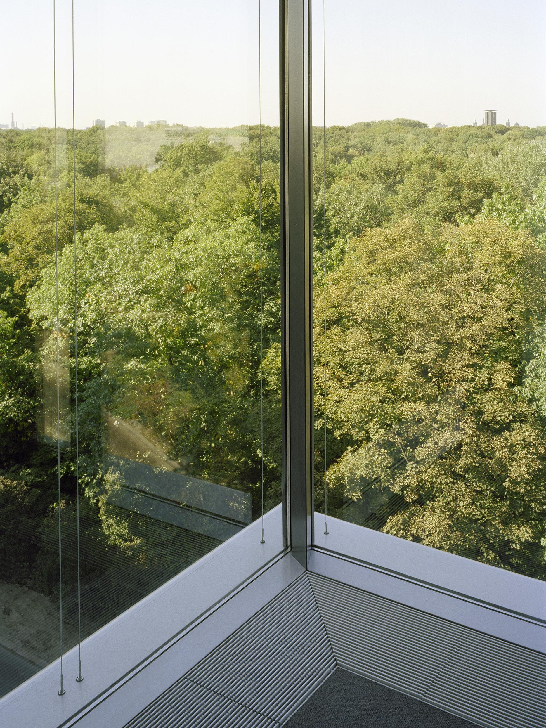 Er entstand als letzter in der Reihe der typologisch gleichen Gebäude und musste sich deutlich von dem bereits geplanten Haus Nr. 5 unterscheiden. Das Thema der fortlaufenden gestalterischen „Entmaterialisierung” in der Reihe der fünf Türme wurde konsequent weitergeführt, das Haus Lennéstraße 3 ist noch leichter und gläserner geworden. Die vertikalen Tragwerkselemente liegen hinter der Fassade, sodass außen nur die horizontalen Deckenbänder zu sehen sind, zwischen denen die raumhohe Verglasung spannt. In Zusammenarbeit mit der Industrie wurde ein eigenes Fassadensystem ohne separate Fensterbrüstung entwickelt. Die bodenständige Ganzglasfassade steht auf der Baugrenze – dadurch entfällt die Konstruktionsfläche in der Fassade und das Gebäude erhielt eine extrem hohe Flächeneffizienz.